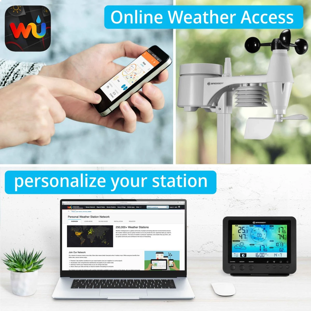- Partagez les données locales de votre station météo sur des applis telles que Weather Underground et Weather Cloud