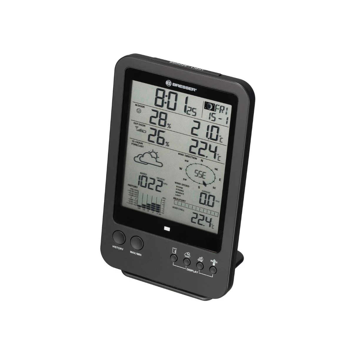 La sécurité est primordiale, et la station météo en est consciente. Vous pouvez programmer des alarmes individuelles pour les valeurs minimales et maximales de divers paramètres. Dès que la valeur définie est atteinte, un signal sonore et lumineux vous avertit. De plus, pour des températures extérieures de -3 °C et au-dessous, une alarme spéciale pour l’alerte au gel/glace peut être activée, vous permettant ainsi de protéger vos plantes et vos biens en cas de conditions climatiques rigoureuses.